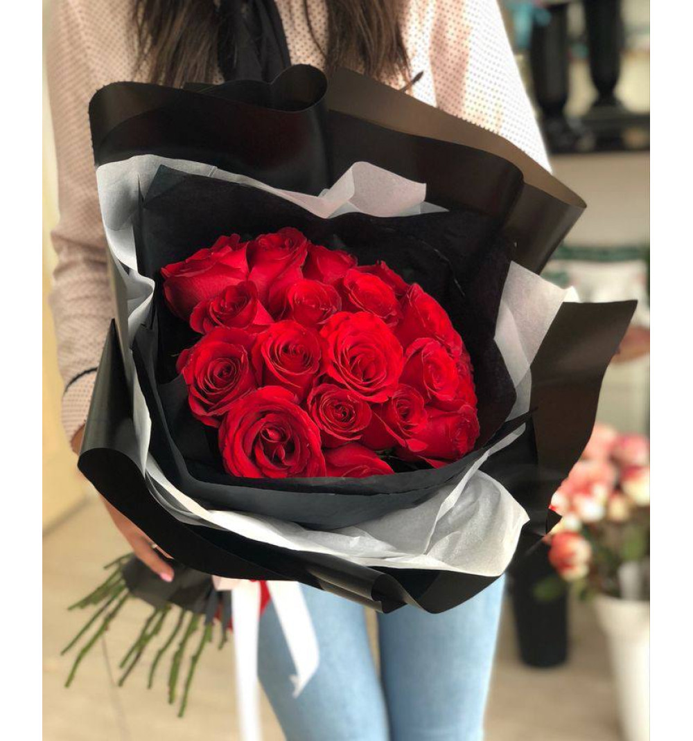 Красный бархат 11 бордовых роз ♥️9 700 ₸