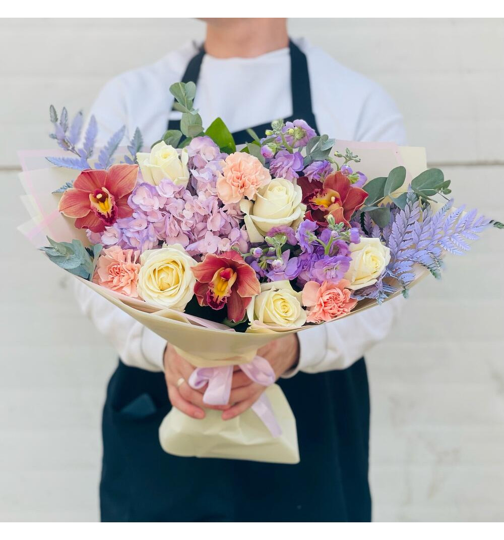 Купить Авторский букет с оранжевыми орхидеями в Абае за 25 000 ₸ | интернет-магазин «Guls»