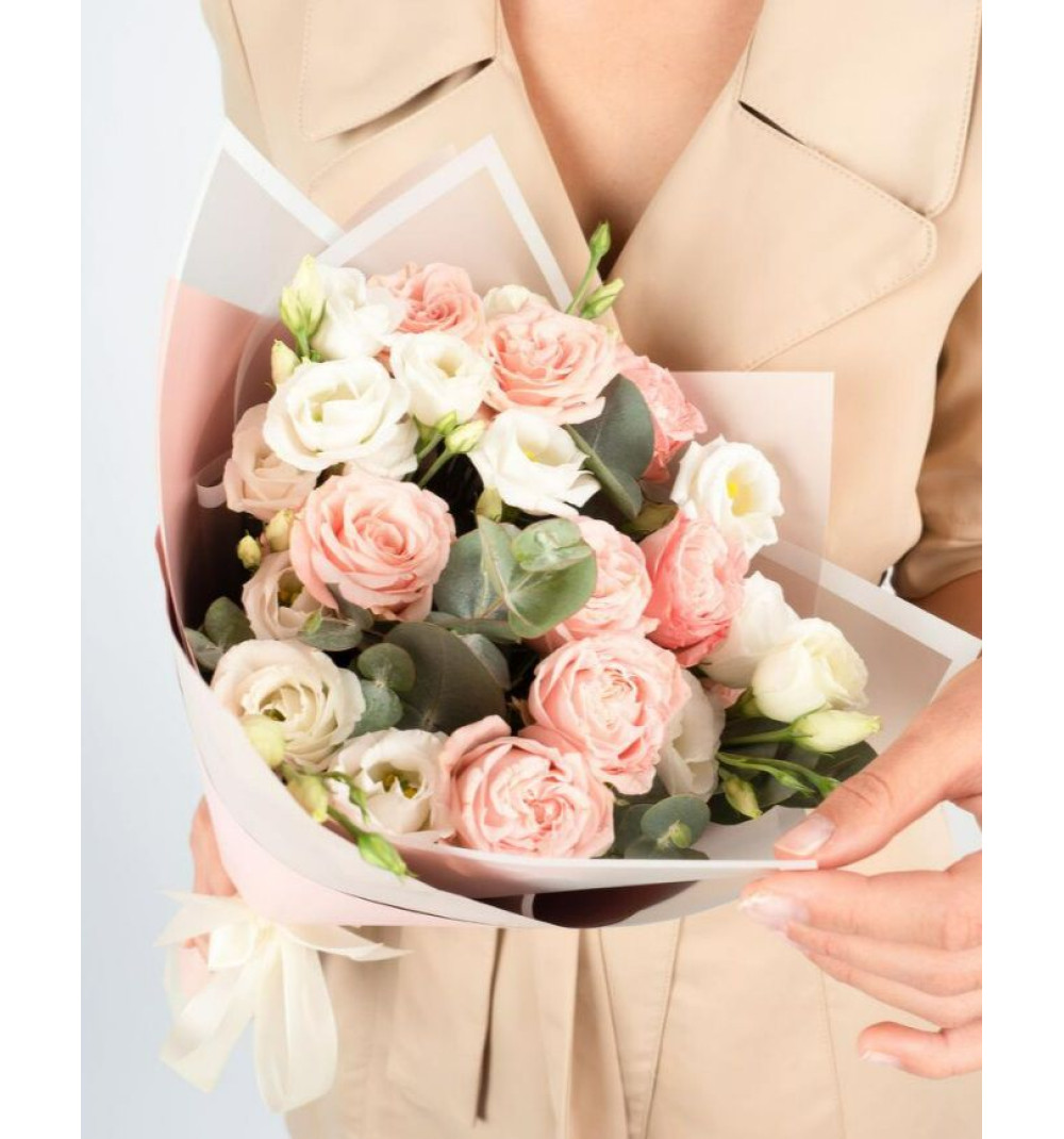 Букет с пионовидной розой и эустомой — это изысканное и стильное сочетание двух прекрасных цветов. Пионовидная роза приносит волшебство своими многослойными лепестками и нежным оттенком, а эустома добавляет ароматные ноты и свежесть. Этот уникальный букет создает атмосферу романтики и изящества. Он станет прекрасным подарком для особых моментов и событий, чтобы выразить свои чувства и создать незабываемые впечатления. Букет с пионовидной розой и эустомой — это элегантное и незабываемое сочетание красоты и страсти.